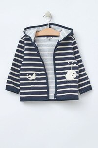 B2515 - baby's striped jacket with a funny whale on the pockets