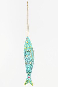 D7961 - Fish Ornament, Paper Mache, Greens, H: 6.3" (x6)