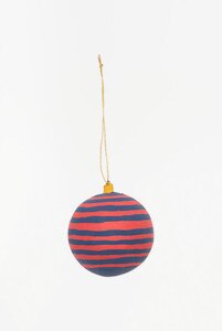 D7963 - Striped Orb Ornament, Paper Mache, Red & Navy, D: 3.5" (x6)
