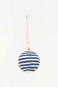 D7964 - Striped Orb Ornament, Paper Mache, White & Navy, D: D: 3.5" (x6)