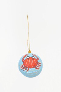 D7965 - Crab Orb Ornament, Paper Mache, Red & Blue, D: D: 3.5" (x6)
