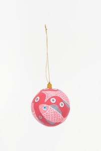 D7966 - Fish Orb Ornament, Paper Mache, Red & Pink, D:D: 3.5" (x6)