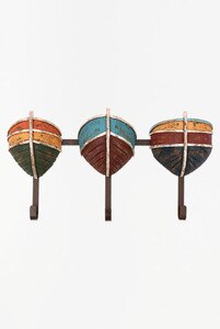 D2059 - 3 Boats Rack w/ 3 Hooks, Wood & Metal, Multi Colors, L : 15.7" - H : 8.2" (X2)