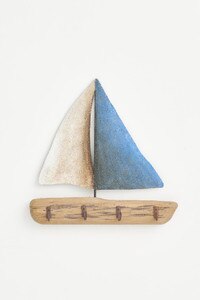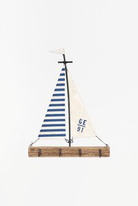 D7718 - Sailboat Key Holder, Blue/White, Wood/Metal, L: 9.8" - H: 9.8" (x4)