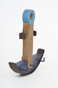 D2180 - Abstract Anchor Key Holder, Nat. Wood w/ Blues, L: 6.1" - H: 7" (x4)