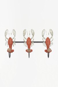 D2335 - 3 Lobsters w/3 Coat Hooks, Metal, Red, L: 16.5" - H: 9.8" (x2)