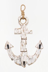 D2715 - Anchor Hook Rack, Wood & Metal, Distressed White, L: 25" - W:2.5" - H: 15.3" (x2)
