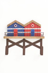 D7617 - Beach Cabanas w/ 3 Coat Hooks, Metal/Wood, L: 11" - H: 9.5" (x2)