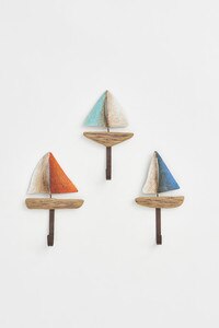 D7717 - Sailboat Hooks, Multi-Colors, Wood/Metal, L: 4" - H: 7.5" SET/3 (x2)