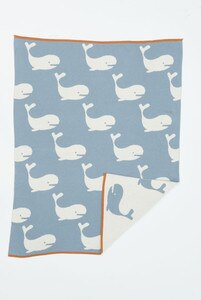D2451 - Whale Reversible Baby Blanket, Lt Blue/Cream, L: 31.5" - H: 39.3"