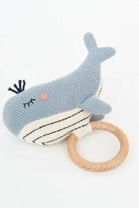 D2454 - Whale Rattle, Lt Blue/Cream, L: 6" - H: 5.5"