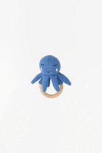 D7922 - Octopus Rattle, Cotton & Wood, Blue, L: 4.7" - H: 3.5"
