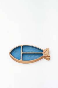 D2324 - Fish Tray-3 Sections, Bamboo, Blue, L: 11.8" - W: 5.9" - H: 1.1" (x2)