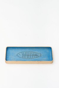 D2331 - Fish Sketch Tray-Rect, Wood, Blue, L: 12.2" - W: 4.7" - H: 1.1" (x3)
