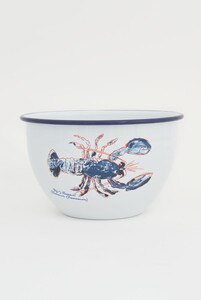 D2501 - Lobster Enamelware Bowl,White/Blue, Lg, D: 8.5" - H: 5" (x2)