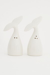 D2129 - Whale Salt And Pepper Shaker Set, Ceramic, Cream, L: 5.1" W :2.75" H: 3" (x4)