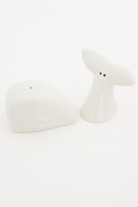 D1518 - Whale Tail Salt & Pepper Shakers, Ceramic, Cream, H: 4.7" Set 2 (x8)