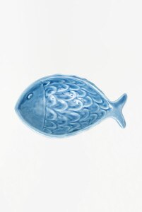 D7284 - Fish Shaped Serving Bowl, Ceramic, Blue, L: 5.9" - W: 1.1" - H: 1.5" (x2)