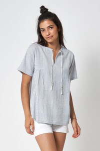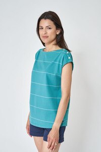 A2349 - Women's cotton sailor blouse with horizontal and vertical stripes and a string at the neck