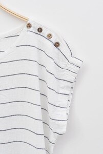A2091 - Dropped Sleeves striped T-shirt w/ 3 buttons on shoulder
