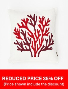 D6228 - Coral Embroidered Sq. Pillow w/ Zipper, Cotton, Poly Insert, White/Burgundy/Red, L: 17.7" - H: 17.7"
