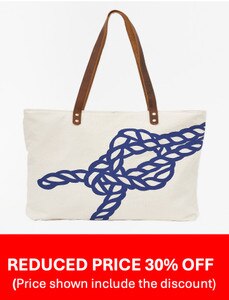 D6757 - Square Knot Tote Bag, Cotton, Natural & Navy, L: 19" - H: 14.1"