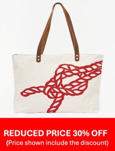 D6758 - Square Knot Tote Bag, Nat/Red, Cotton, L: 19" - H: 14.1"