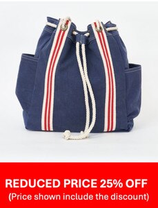D7252 - Canvas Drawstring Backpack w/ Striped Cotton Straps, Navy, L: 12.9" - H: 15.3"