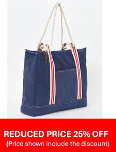 D7253 - Canvas Tote w/ Striped Cotton Straps & Handle, Navy, L: 17.3" - H: 14.1"