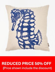 D7336 - Seahorse on Pillow, Sq, Cream/Blue, L: 17.7" - H: 17.7"