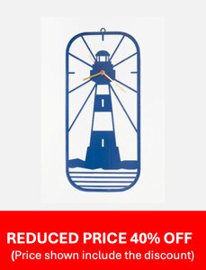 D7382 - Lighthouse Wall Clock, Metal Cutout, Blue, L: 19.6" - H: 9.2"